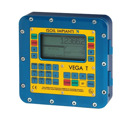 VEGA T is designed primarily for road tank trucks, aviation dispensers and refueller applications. Light weight, slim design and a large LCD display are the key features that make this electronic counter suitable for installation on all vehicles. The VEGA T is provided with a user-friendly software granting flexibility and easiness of use. The backlighted display allows easy reading of information both day and night while the membrane keyboard includes a set of alphanumeric and function buttons to perform all the operations. One or two PD or turbine meters can be connected to the VEGA T using pulse emitters. Other meter types can also be used as long as a suitable pulse feed is provided.