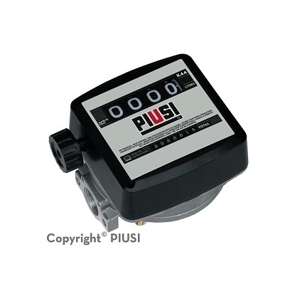The PIUSI K33 and K44 are mechanical flow meters suitable for the monitoring of diesel. PIUSI K33 as a mechanical flow meter has a partial indicator with 3 digits (max. 999 liters), total 6 digits, while PIUSI K44 has a partial indicator with 4 digits (max. 9999 liters), with a total of 7 digits.